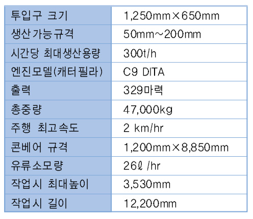 최소 50mm의 골재를 생산가능하며 콘크라샤 병행 설치시 25mm에서 40m미의